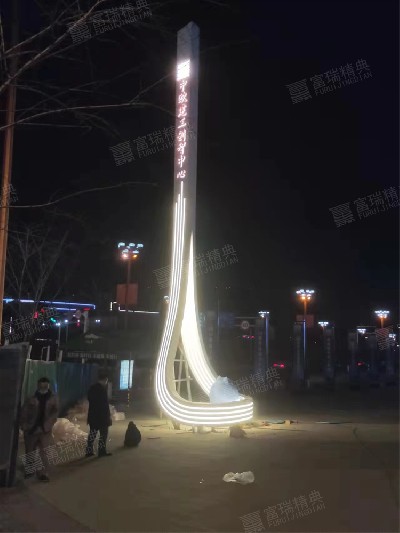 材质:不锈钢构筑物、精神堡垒、导视系统、公交车站台