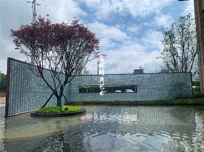 材质:玻璃砖景墙、不锈钢景观小品